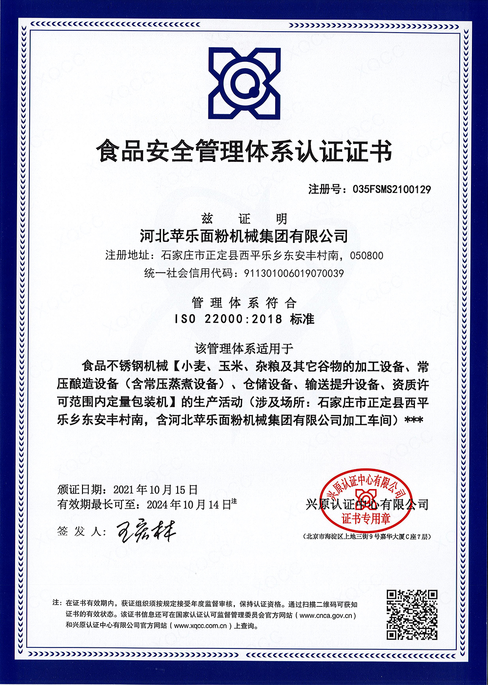 河北蘋樂面粉機械集團有限公司 地址:石家莊市正定縣西平樂鄉(xiāng)東安豐村南
